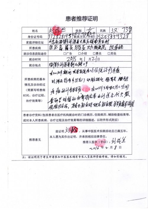 4、德善之人加盟优先,报名者;登记身份证、电话、地址、前期病历、生活简历、以便按病治疗。加盟者免费参加培训班,优惠传授技术,优惠治疗,培养德才廉备食医高等双峰人才,病者除病因祸得福脱贫增收全家翻身救世。