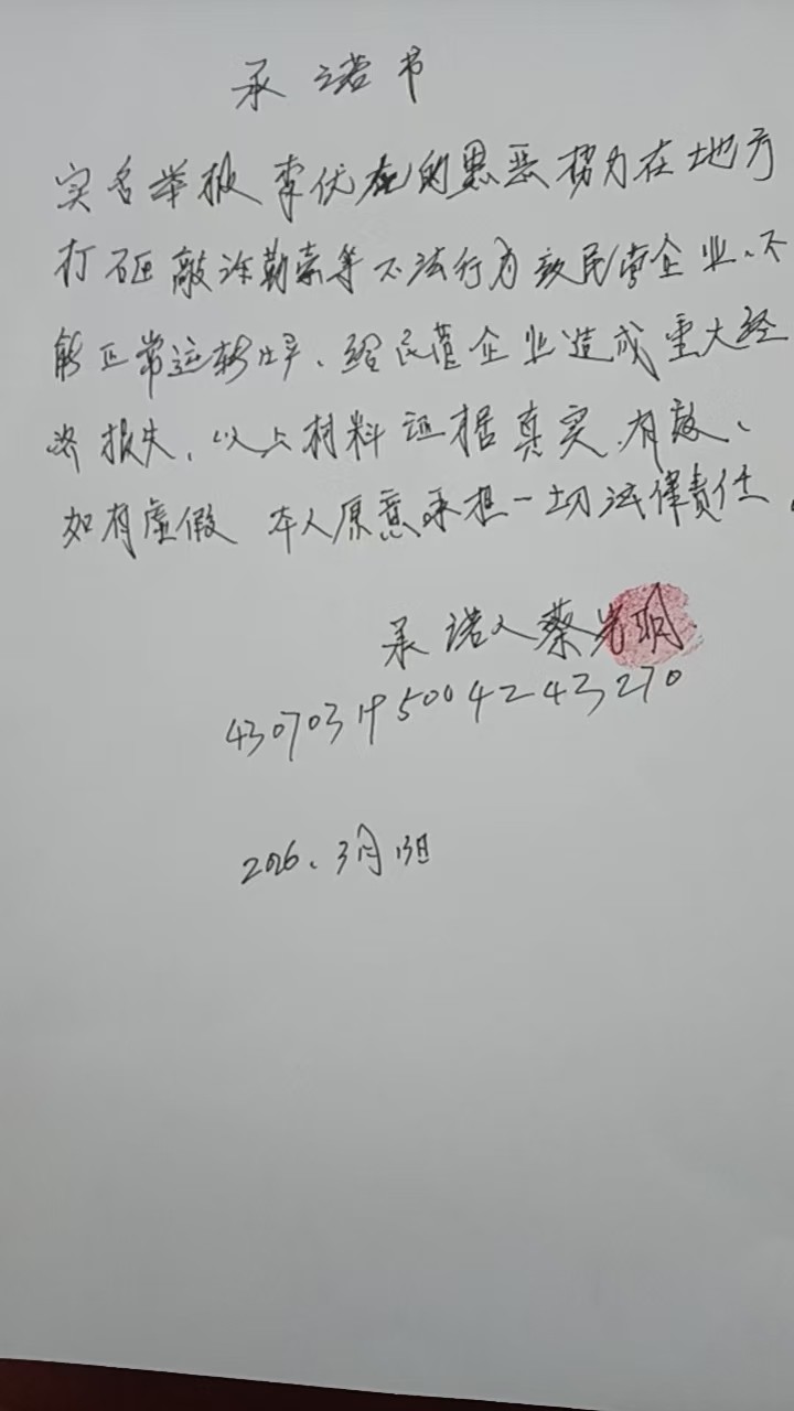 4、李伏龙团伙恶人先告状,到处诬告我们公司法人代表谭巨庭和我的儿子蔡书劲及我们公司,诬告我们骗贷款,骗国家项目资金等等,严重影响公司正常经营。